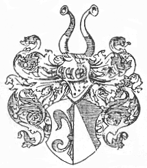 og sylv. På hjelmen to av blått og sylv skilde vesselhorn.